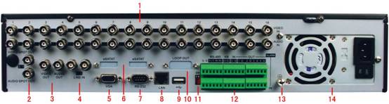 ② VIDEO SPOT OUT本地辅助监视接口,AUDIO OUT本地辅助监听接口;